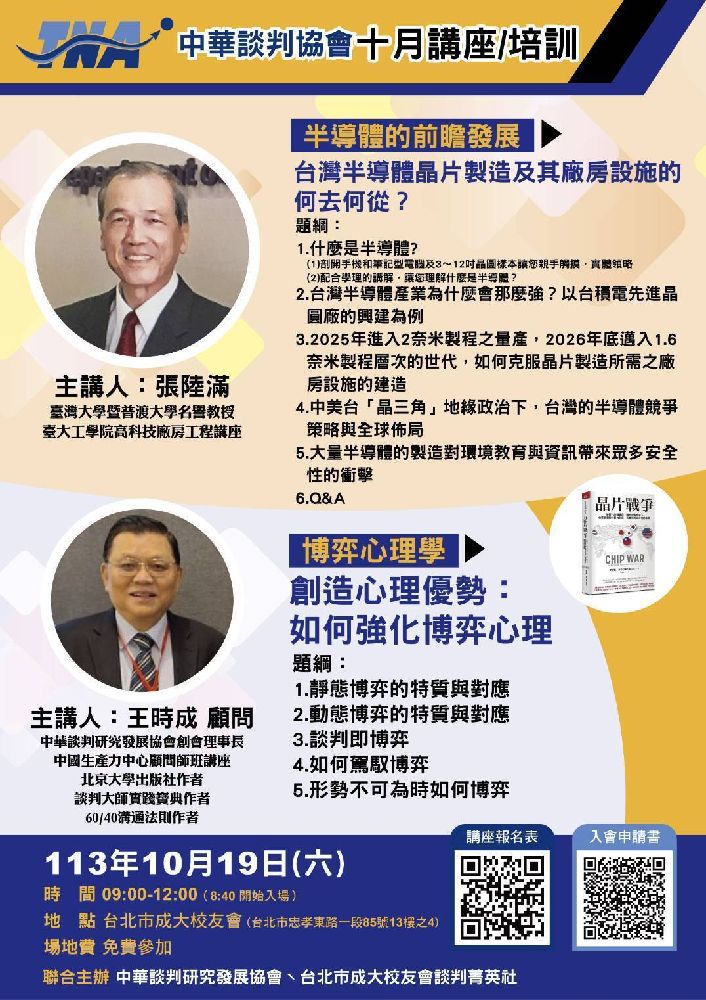感謝文溫兄率先支持帶動,台中校友會廖會長(他去年已邀請我去台中校友會舉辦過專題演講)將於11月與我面談成立台中市中華談判研究發展協會事宜。